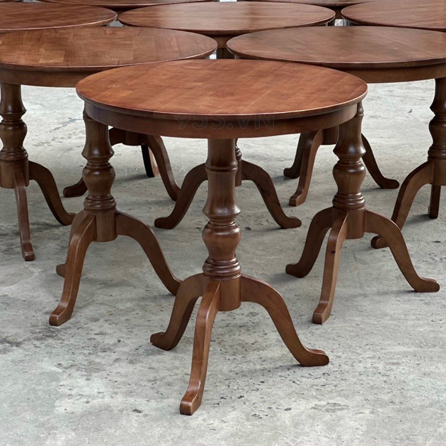 Thông số D60cm H75cm Chất liệu Gỗ cao su tự nhiên Màu sắc Nâu. tự nhiên Ứng dụng Bàn cafe gỗ, bàn cafe tròn Bảo hành 12 tháng
